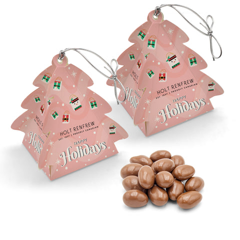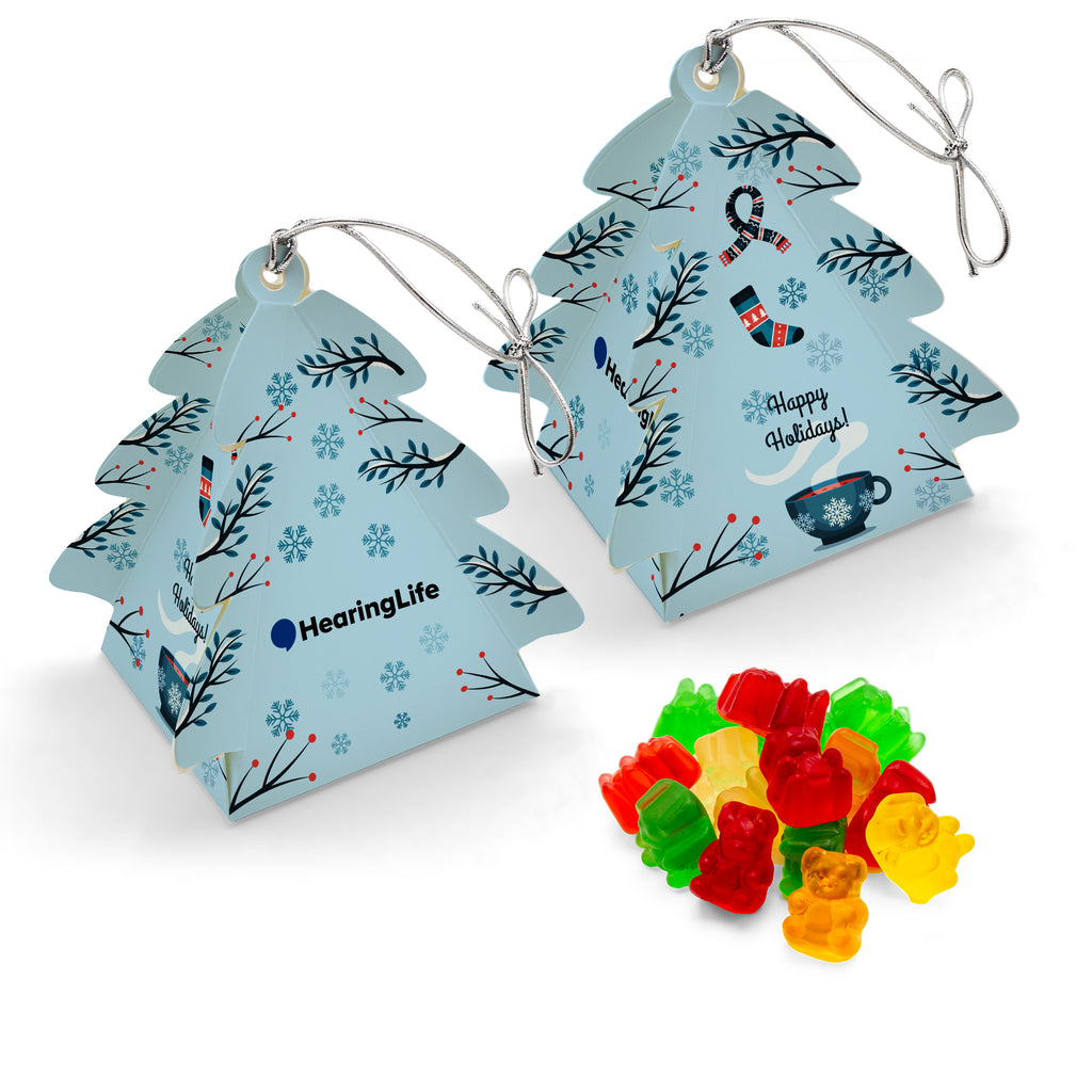 A tree that’s rooted in sweetness. This fully customizable box is shaped like a festive tree, with all four sides available for your design, logo, or holiday message. Inside, choose from four candy or chocolate fills to surprise and delight. With a stretch loop on top, it becomes a ready-to-hang ornament, spreading cheer long after the sweets are gone.